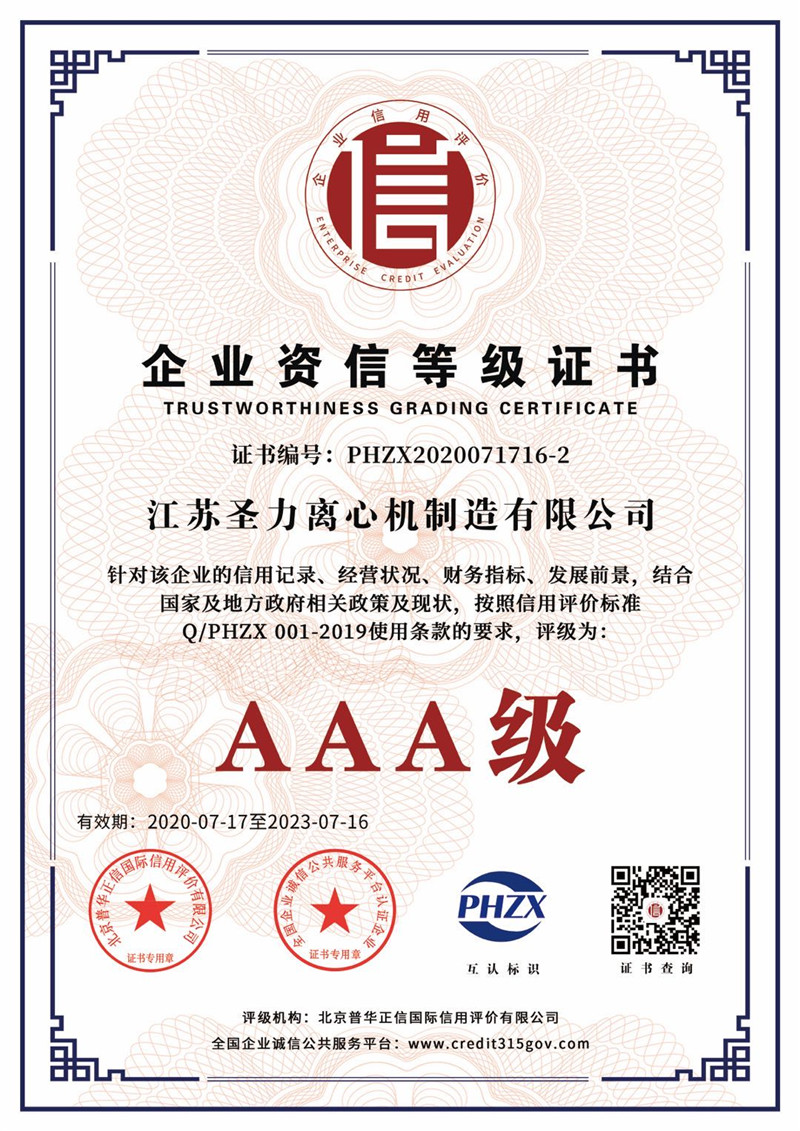 江蘇圣力離心機(jī)制造有限公司是國(guó)內(nèi)分離機(jī)械行業(yè)中主要的離心機(jī)生產(chǎn)企業(yè),對(duì)離心機(jī)的研究、設(shè)計(jì)、制造有多年的歷史,擁有齊全的設(shè)備、完善的檢測(cè)手段。公司已通過IS09000國(guó)際質(zhì)量體系認(rèn)證、ISO14001環(huán)境管理體系認(rèn)證、ISO45001:2018職業(yè)健康安全管理體系認(rèn)證和CE認(rèn)證,是江蘇省高新技術(shù)企業(yè),曾榮獲國(guó)家和地方多項(xiàng)榮譽(yù)稱號(hào)。
